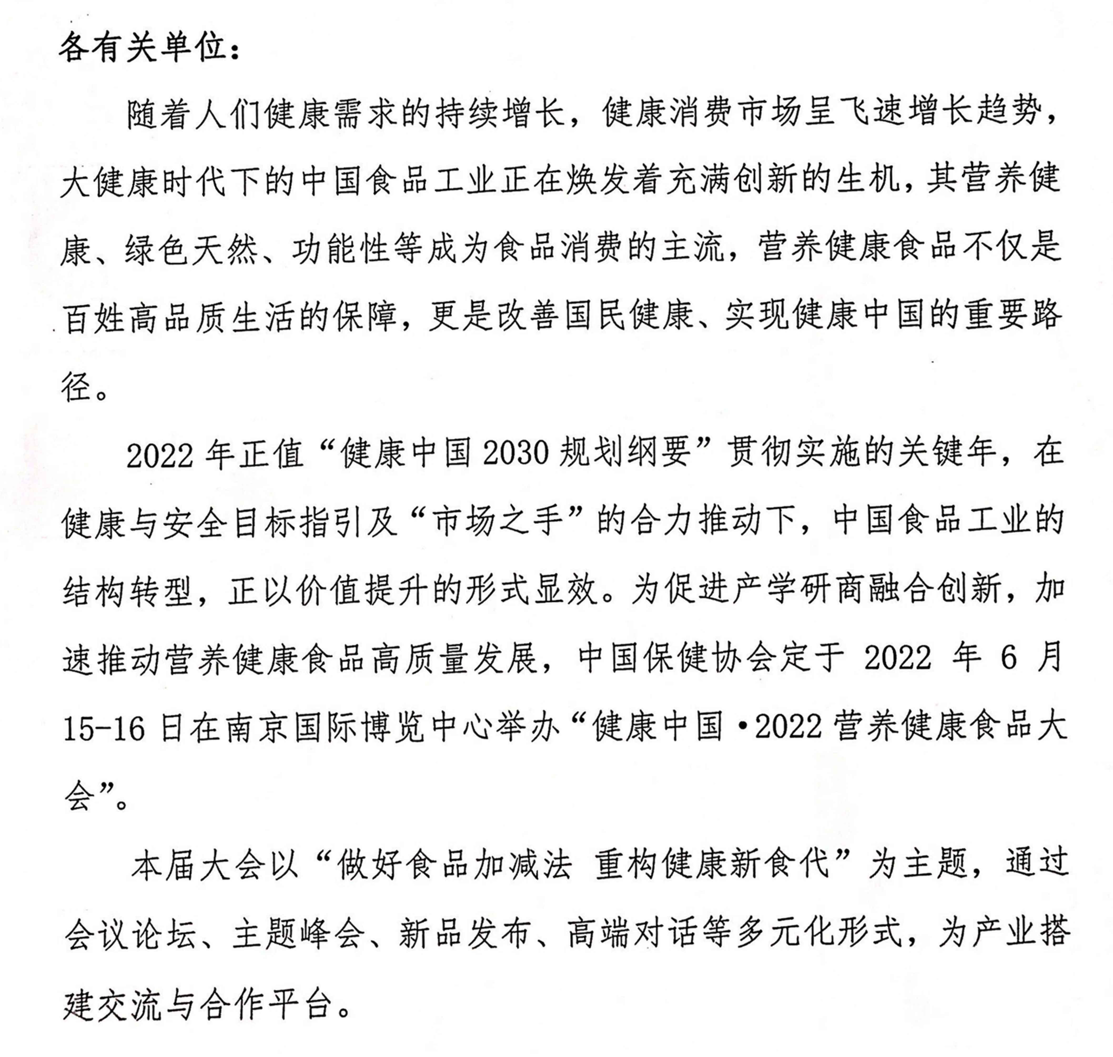 HFIC 2022 健康中国·营养健康食品大会--南京(延期)