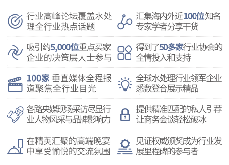 水行业国际嘉年华是一场凸显水元素的主题活动,集行业年度盛会,高峰论坛和商务休闲为一体,让专业的商业交流氛围充满创意和乐趣!