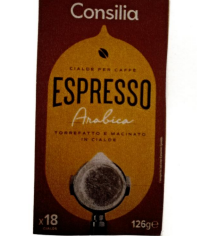 -Consilia牌阿拉比卡浓缩咖啡胶囊(Capsula DG Consilia Espresso Arabica), 16x7克装,生产批次为01ND02B-01ND03B,保质期至2024年2月2日-3日;