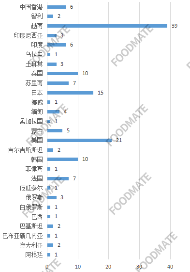 信息显示,未准入境的食品产地有阿根廷、澳大利亚、巴布亚新几内亚、巴基斯坦、巴西、白俄罗斯、俄罗斯、厄瓜多尔、法国、菲律宾、韩国、吉尔吉斯斯坦、美国、蒙古、孟加拉国、缅甸、挪威等。其中,来自越南的未准入境食品数量最多,有39批次,涉及腰果仁、干鳀鱼、饮料、虾仁等产品。