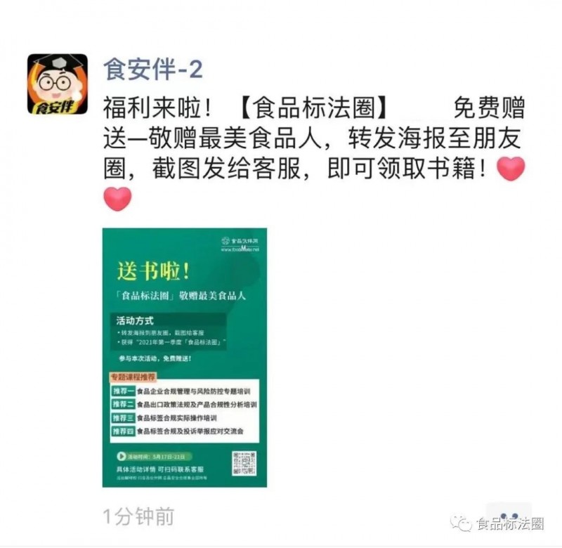 福利来啦!【食品标法圈】免费赠送—敬赠最美食品人,转发海报至朋友圈,截图发给客服,即可领取书籍!