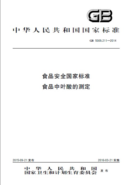 GB 5009.211-2014 食品安全国家标准 食品中叶酸的测定 英文版 已有译文已打五折