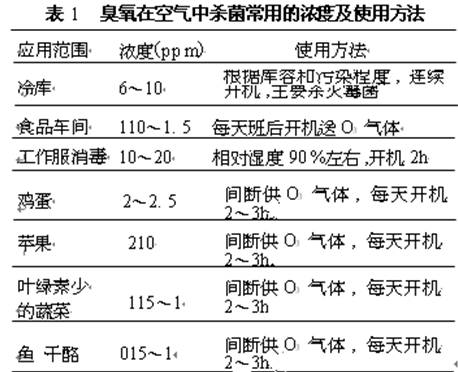 臭氧在空气中杀菌常用的浓度及使用方法应用范围浓度(ppm)表