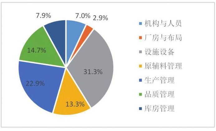 现场核查涉及的不合格关键项共计22条,主要涉及设备设施、生产管理和品质管理等方。