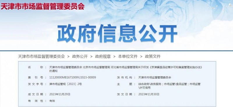 第五十九条 本办法自2023年12月1日起施行,有效期5年。《北京市食品经营许可管理办法(试行)》《天津市食品经营许可管理实施办法》《河北省销售环节食品经营许可管理实施办法(试行)》《河北省食品经营(餐饮服务类)许可管理实施办法(试行)》同时废止。