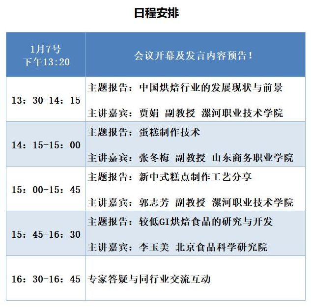 课程题目:烘焙技术交流线上研讨会