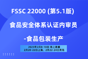 通过本课程的详细讲解,学员可以了解FSSC 22000标准条款的新要求, 以及对ISO 22000标准做技术细节补充的ISO/TS 22002-4《食品安全前提方案-第4部分:食品包材生产》前提方案标准。学会如何整合ISO 22000和前提方案,建立FSSC 22000食品安全管理认证体系。