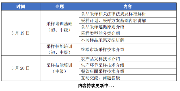 本次培训为食品采样员(初级)和食品采样员(中级),高级采样员的培训工作另行通知和安排。
