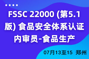 FSSC 22000 (第5.1版) 食品安全体系认证内审员-食品生产(郑州)